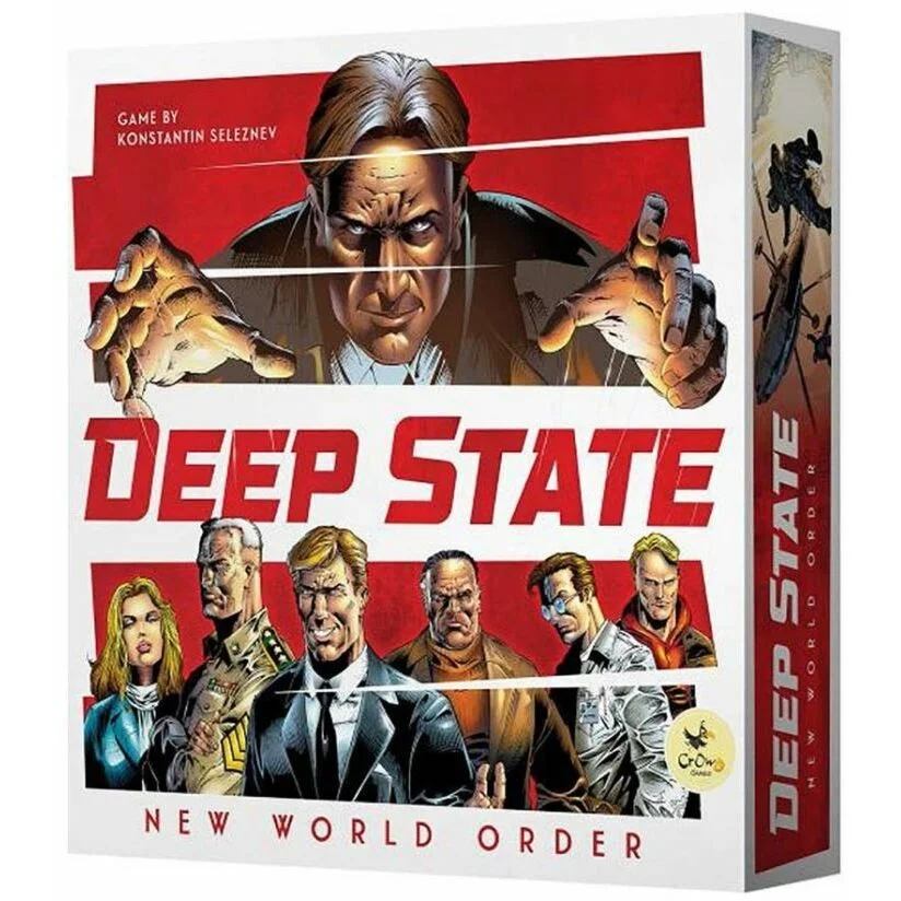 Deep State: New World Order is a dystopian game of world domination and global conspiracies. The game takes place over several rounds, and in the course of a round, players begin with the action phase, which is followed by the takeover phase. Those two phases repeat, then at the end of the round comes the treaty phase.