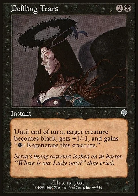 Until end of turn, target creature becomes black, gets +1/-1, and gains "{B}: Regenerate this creature."