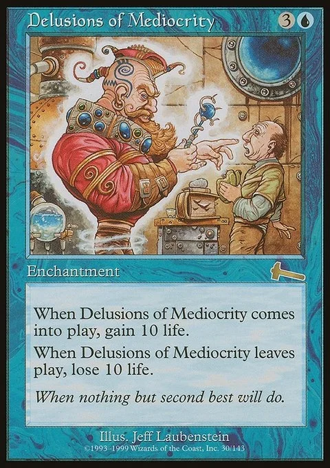 When Delusions of Mediocrity comes into play, gain 10 life.When Delusions of Mediocrity leaves play, lose 10 life.