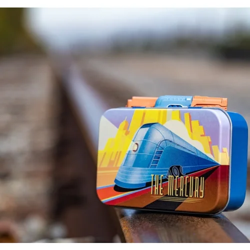 Stylistically ahead of it’s time, the Mercury was one of the most famous American streamlined locomotives of the 20th century, running’s from 1936 until it’s retirement in 1959. The Mercury’s tin cover is in Art Deco – a popular style for train advertisements in the early years of the Mercury’s service.