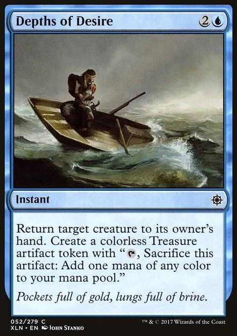Return target creature to its owner's hand. Create a Treasure token. (It's an artifact with "{T}, Sacrifice this token: Add one mana of any color.")