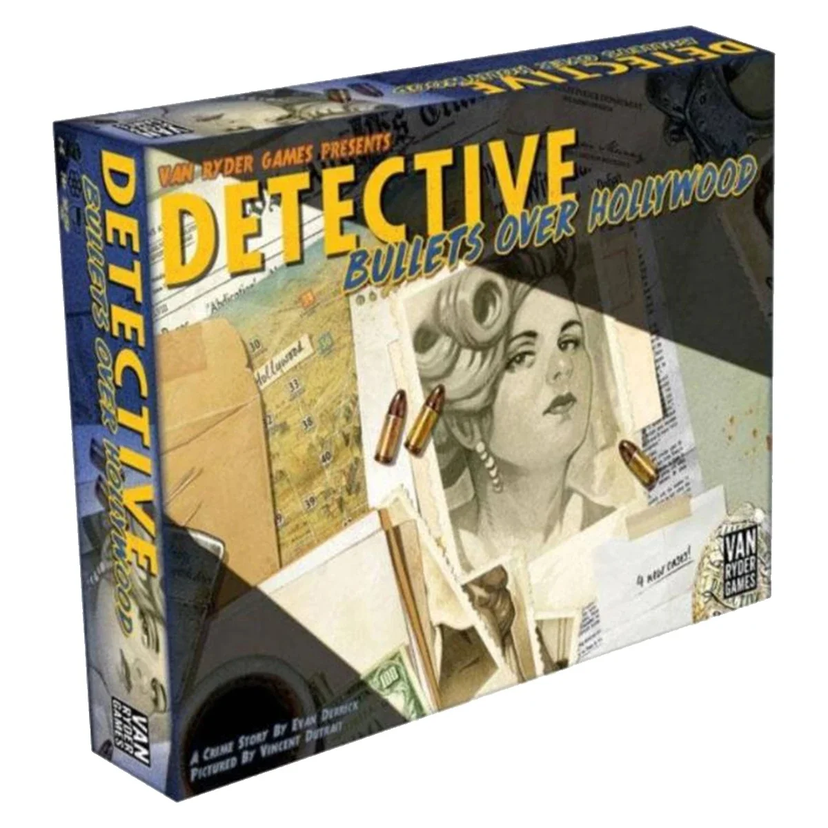 Bullets Over Hollywood is an expansion for Detective: City of Angels. It includes four additional cases with more than 200 cards!