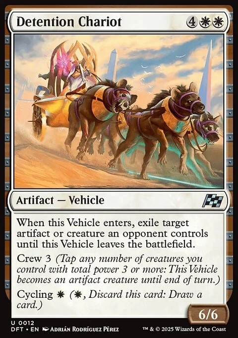 When this Vehicle enters, exile target artifact or creature an opponent controls until this Vehicle leaves the battlefield.