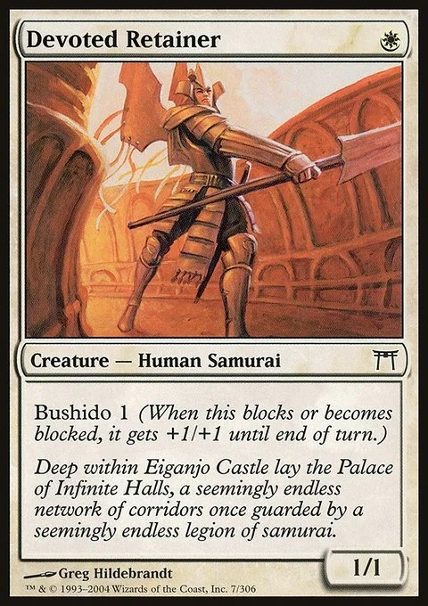 Bushido 1 (Whenever this creature blocks or becomes blocked, it gets +1/+1 until end of turn.)