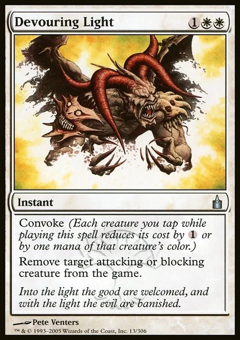 Convoke (Your creatures can help cast this spell. Each creature you tap while casting this spell pays for {1} or one mana of that creature's color.) Exile target attacking or blocking creature.