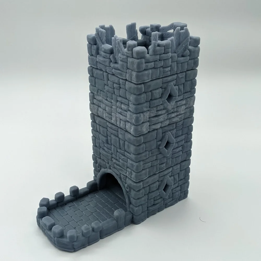 The Dice Tower has a base of 160mm by 80mm and 195mm high.