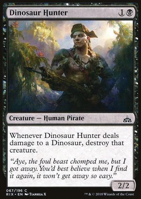 Whenever this creature deals damage to a Dinosaur, destroy that creature.