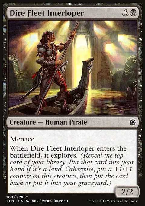 Menace When this creature enters, it explores. (Reveal the top card of your library. Put that card into your hand if it's a land. Otherwise, put a +1/+1 counter on this creature, then put the card back or put it into your graveyard.)