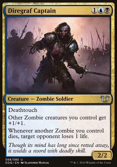 Deathtouch Other Zombie creatures you control get +1/+1. Whenever another Zombie you control dies, target opponent loses 1 life.