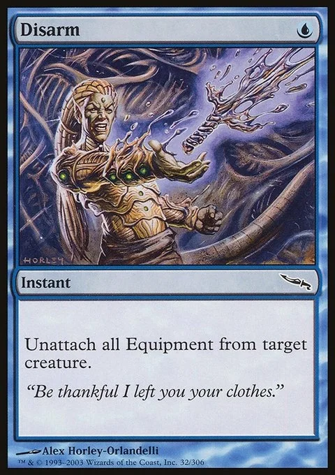Unattach all Equipment from target creature.