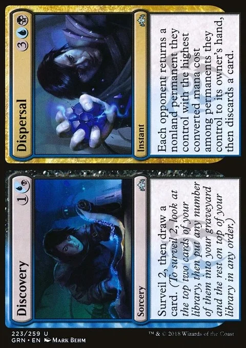 Surveil 2, then draw a card. (To surveil 2, look at the top two cards of your library, then put any number of them into your graveyard and the rest on top of your library in any order.)