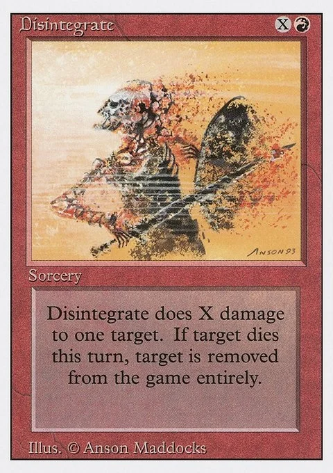 Disintegrate deals X damage to any target. If it's a creature, it can't be regenerated this turn, and if it would die this turn, exile it instead.
