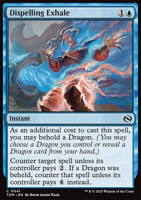Counter target spell unless its controller pays {2}. If a Dragon was beheld, counter that spell unless its controller pays {4} instead.