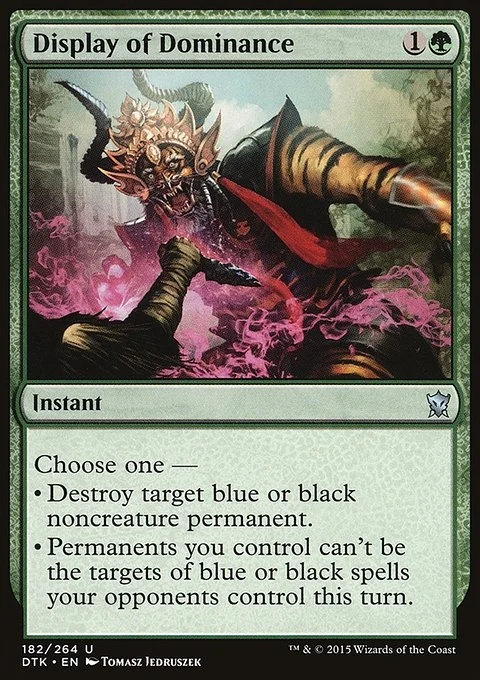 Choose one — • Destroy target blue or black noncreature permanent. • Permanents you control can't be the targets of blue or black spells your opponents control this turn.