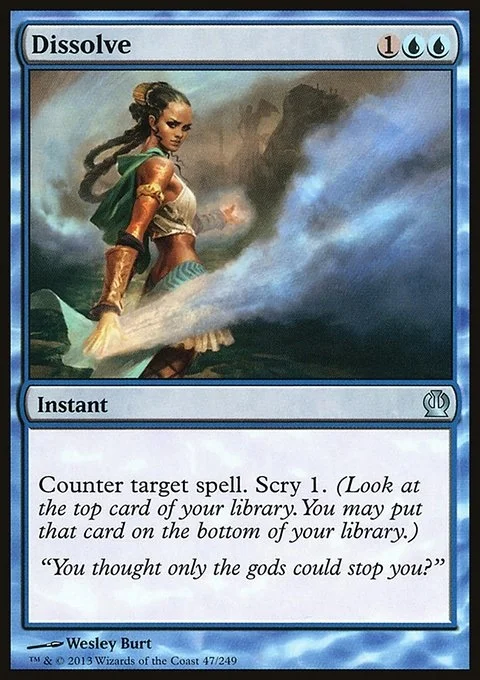 Counter target spell. Scry 1. (Look at the top card of your library. You may put that card on the bottom of your library.)