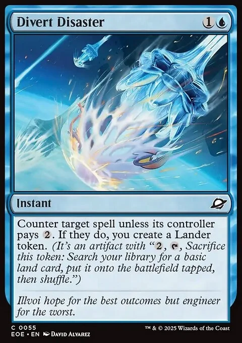 Counter target spell unless its controller pays {2}. If they do, you create a Lander token. (It's an artifact with "{2}, {T}, Sacrifice this token: Search your library for a basic land card, put it onto the battlefield tapped, then shuffle.")