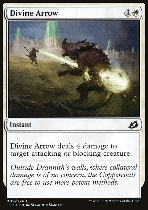 Divine Arrow deals 4 damage to target attacking or blocking creature.