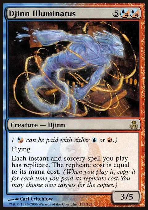 ({U/R} can be paid with either {U} or {R}.) Flying Each instant and sorcery spell you cast has replicate. The replicate cost is equal to its mana cost. (When you cast it, copy it for each time you paid its replicate cost. You may choose new targets for the copies.)