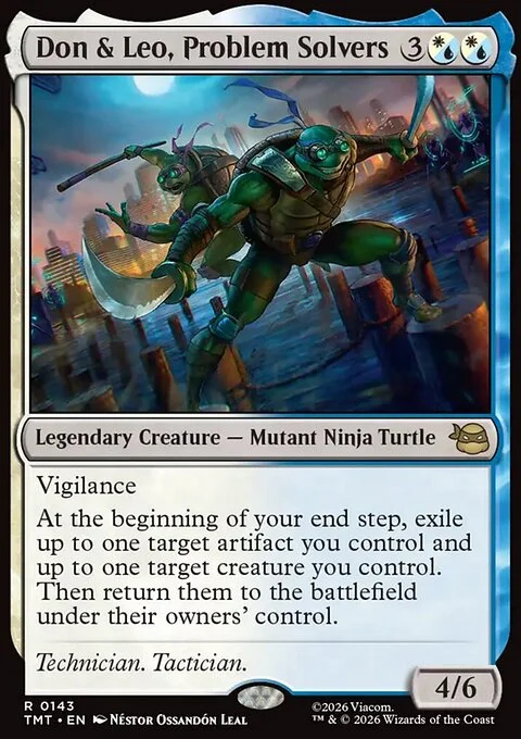 Vigilance At the beginning of your end step, exile up to one target artifact you control and up to one target creature you control. Then return them to the battlefield under their owners' control.