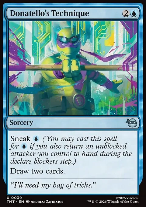 Sneak {U} (You may cast this spell for {U} if you also return an unblocked attacker you control to hand during the declare blockers step.) Draw two cards.