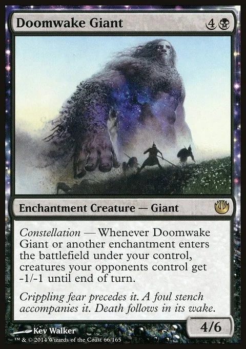 Constellation — Whenever Doomwake Giant or another enchantment enters the battlefield under your control, creatures your opponents control get -1/-1 until end of turn.