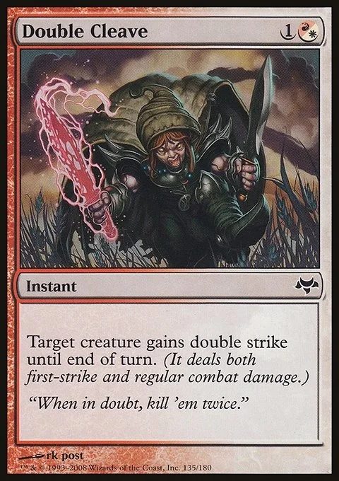 Target creature gains double strike until end of turn. (It deals both first-strike and regular combat damage.)