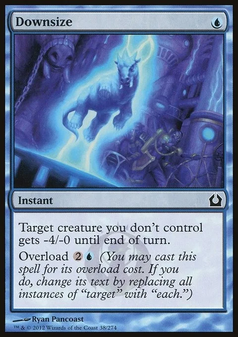Target creature you don't control gets -4/-0 until end of turn. Overload {2}{U} (You may cast this spell for its overload cost. If you do, change its text by replacing all instances of "target" with "each.")