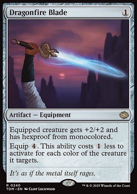 Equipped creature gets +2/+2 and has hexproof from monocolored. Equip {4}. This ability costs {1} less to activate for each color of the creature it targets.