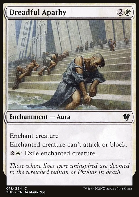 Enchant creature Enchanted creature can't attack or block. {2}{W}: Exile enchanted creature.