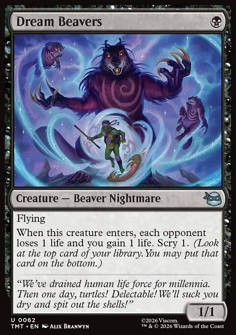 Flying When this creature enters, each opponent loses 1 life and you gain 1 life. Scry 1. (Look at the top card of your library. You may put that card on the bottom.)