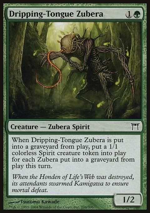 When Dripping-Tongue Zubera dies, create a 1/1 colorless Spirit creature token for each Zubera that died this turn.