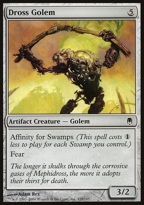 Affinity for Swamps (This spell costs {1} less to cast for each Swamp you control.) Fear (This creature can't be blocked except by artifact creatures and/or black creatures.)