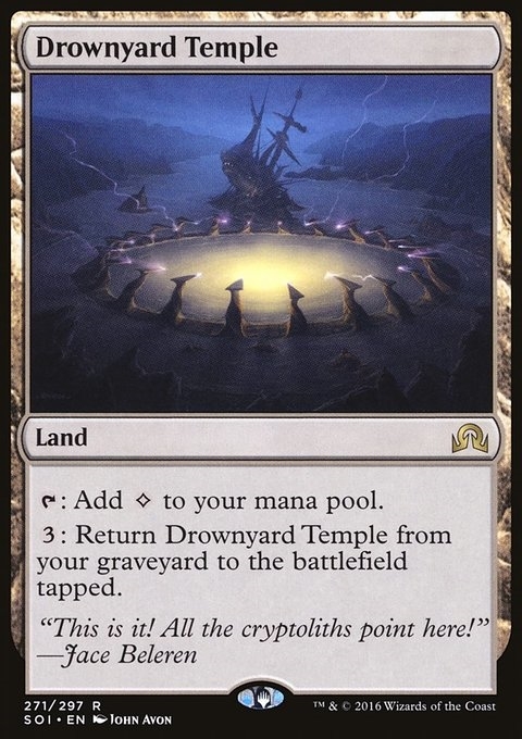 {T}: Add {C}. {3}: Return Drownyard Temple from your graveyard to the battlefield tapped.