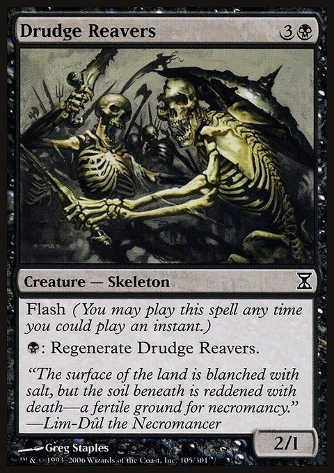 Flash (You may cast this spell any time you could cast an instant.) {B}: Regenerate Drudge Reavers.