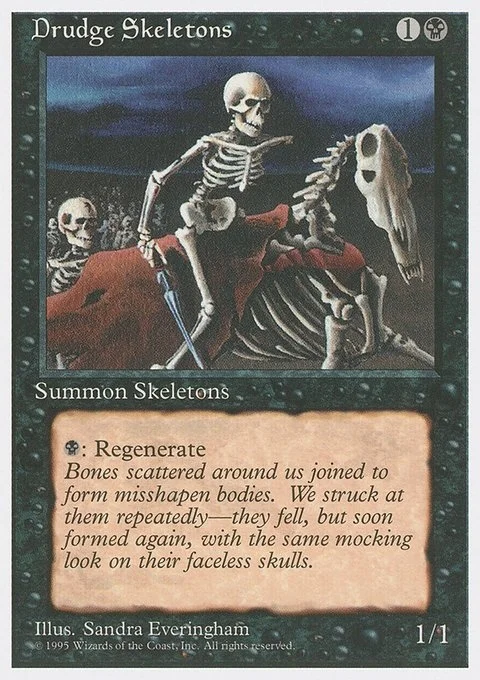 {B}: Regenerate Drudge Skeletons. (The next time this creature would be destroyed this turn, it isn't. Instead tap it, remove all damage from it, and remove it from combat.)