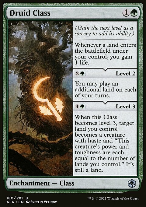 When this Class becomes level 3, target land you control becomes a creature with haste and "This creature's power and toughness are each equal to the number of lands you control." It's still a land.