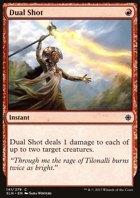 Dual Shot deals 1 damage to each of up to two target creatures.