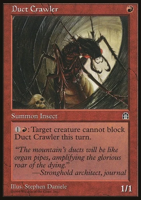 {1}{R}: Target creature can't block Duct Crawler this turn.