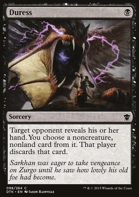 Target opponent reveals their hand. You choose a noncreature, nonland card from it. That player discards that card.