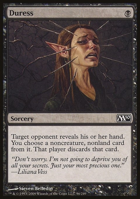 Target opponent reveals their hand. You choose a noncreature, nonland card from it. That player discards that card.