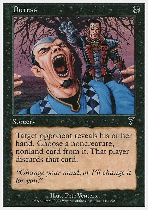Target opponent reveals their hand. You choose a noncreature, nonland card from it. That player discards that card.