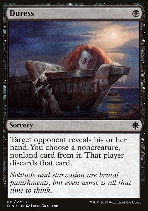 Target opponent reveals their hand. You choose a noncreature, nonland card from it. That player discards that card.