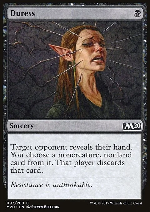 Target opponent reveals their hand. You choose a noncreature, nonland card from it. That player discards that card.