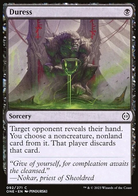 Target opponent reveals their hand. You choose a noncreature, nonland card from it. That player discards that card.