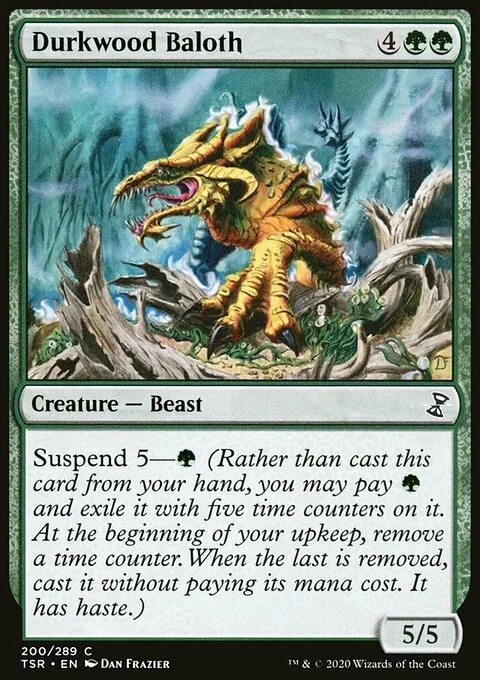 Suspend 5—{G} (Rather than cast this card from your hand, you may pay {G} and exile it with five time counters on it. At the beginning of your upkeep, remove a time counter. When the last is removed, cast it without paying its mana cost. It has haste.)
