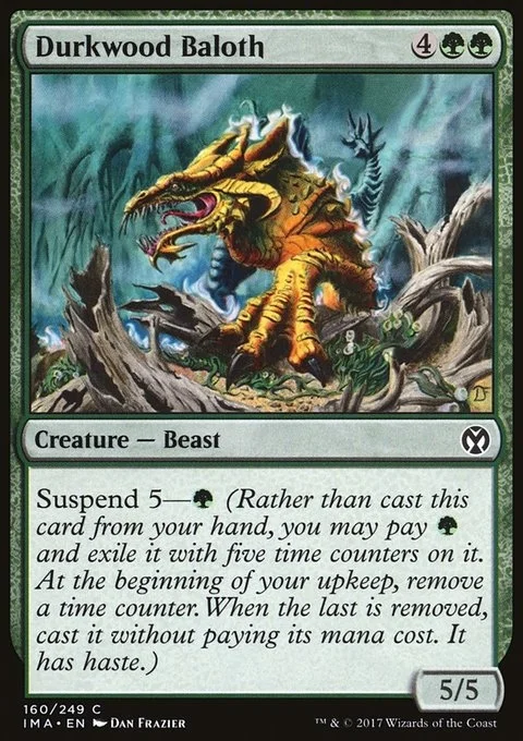 Suspend 5—{G} (Rather than cast this card from your hand, you may pay {G} and exile it with five time counters on it. At the beginning of your upkeep, remove a time counter. When the last is removed, you may cast it without paying its mana cost. It has haste.)