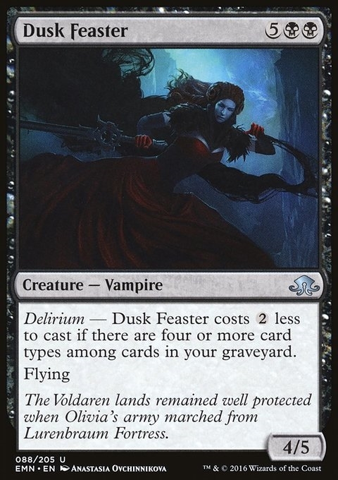 Delirium — This spell costs {2} less to cast if there are four or more card types among cards in your graveyard. Flying
