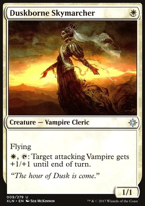 Flying {W}, {T}: Target attacking Vampire gets +1/+1 until end of turn.