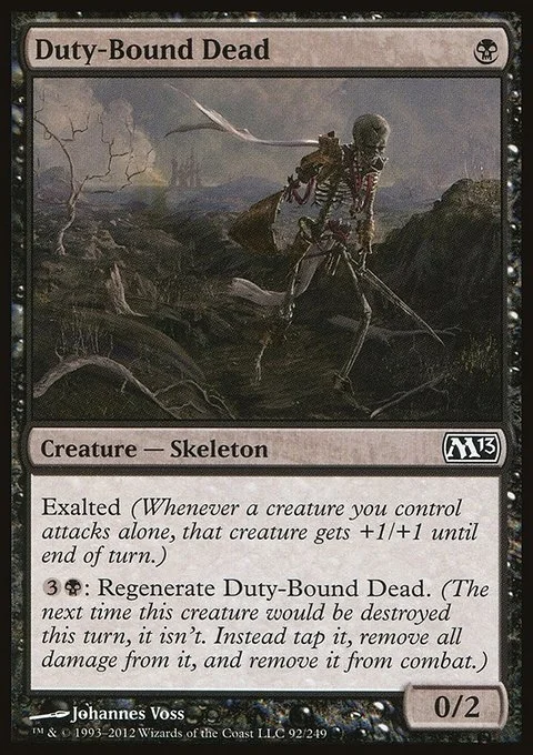 {3}{B}: Regenerate Duty-Bound Dead. (The next time this creature would be destroyed this turn, it isn't. Instead tap it, remove all damage from it, and remove it from combat.)