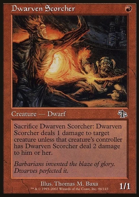 Sacrifice Dwarven Scorcher: Dwarven Scorcher deals 1 damage to target creature unless that creature's controller has Dwarven Scorcher deal 2 damage to them.